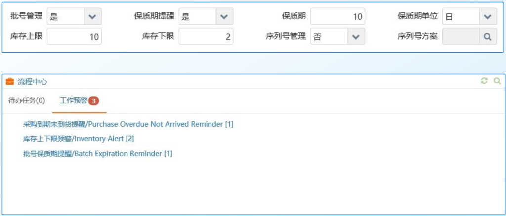 库存上下限、保质期预警;实时跟踪货品详情