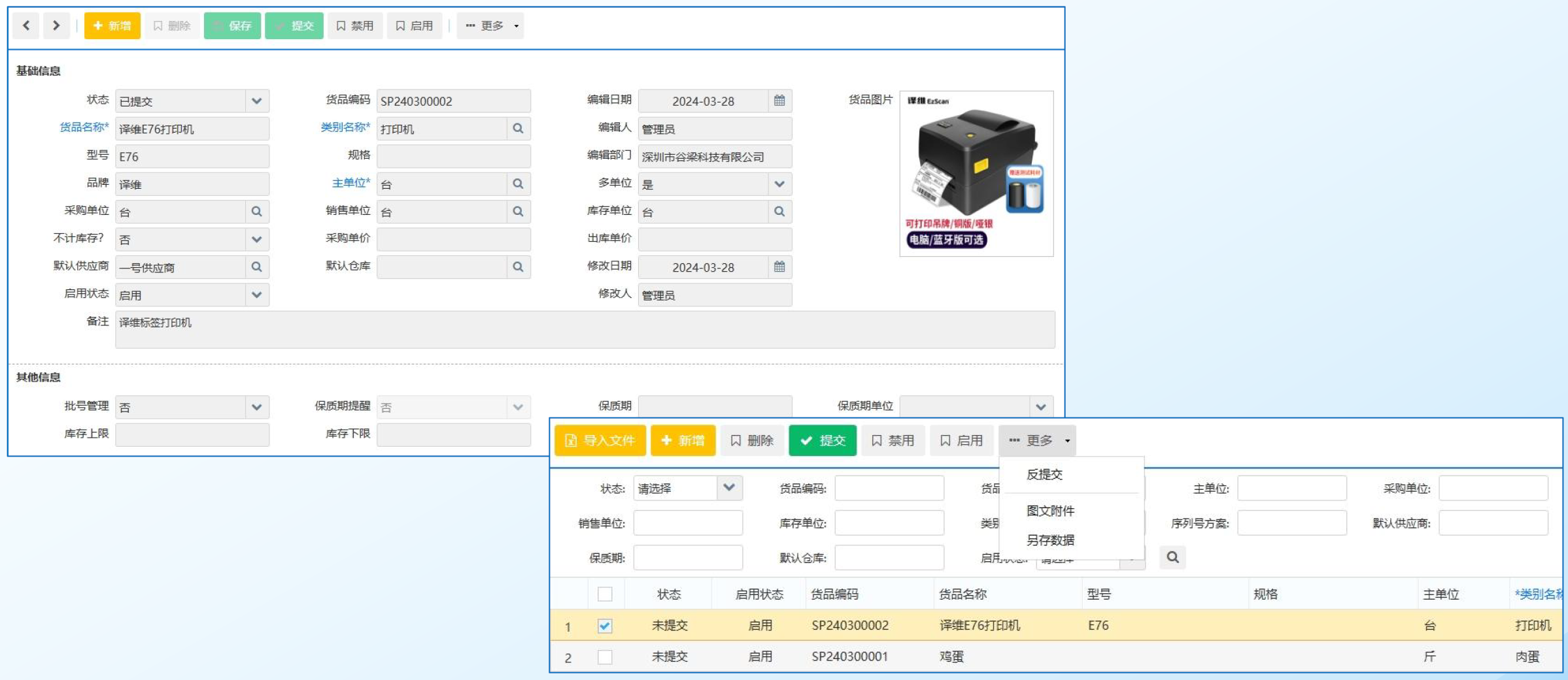 货品和分类信息支持添加图片,以对应实物